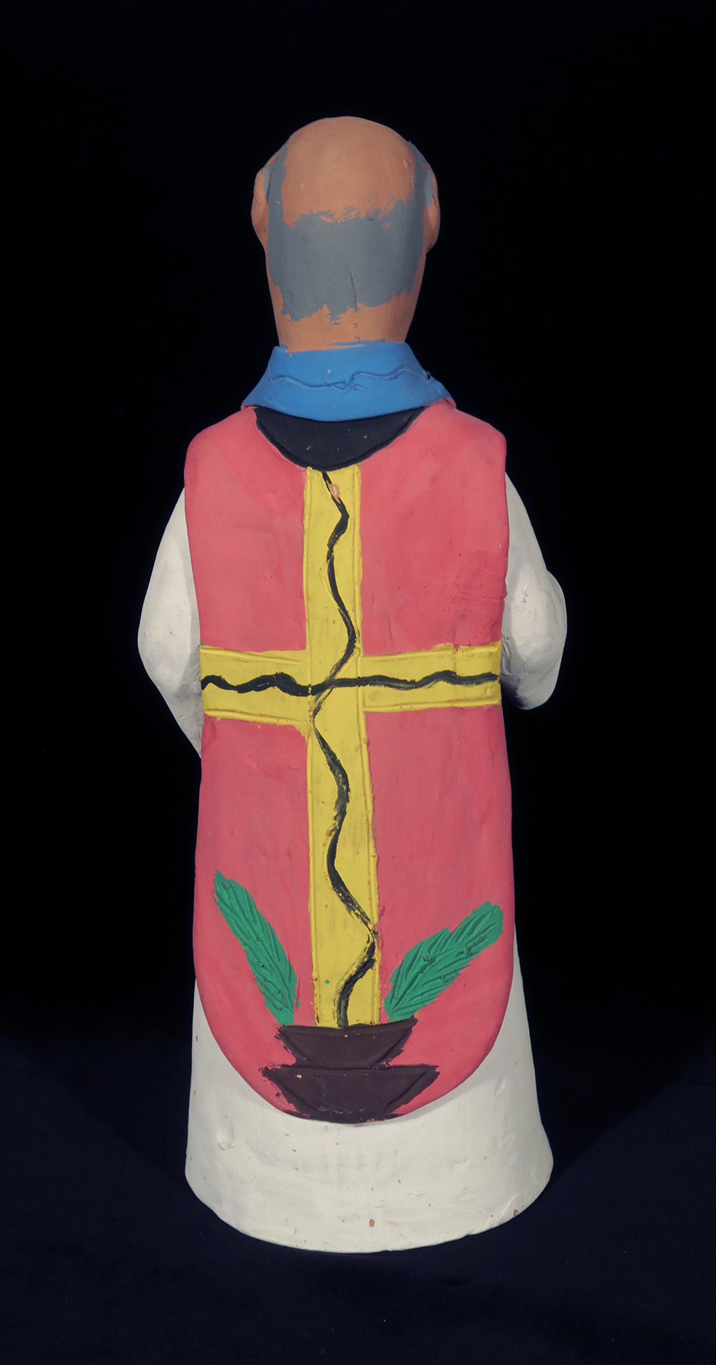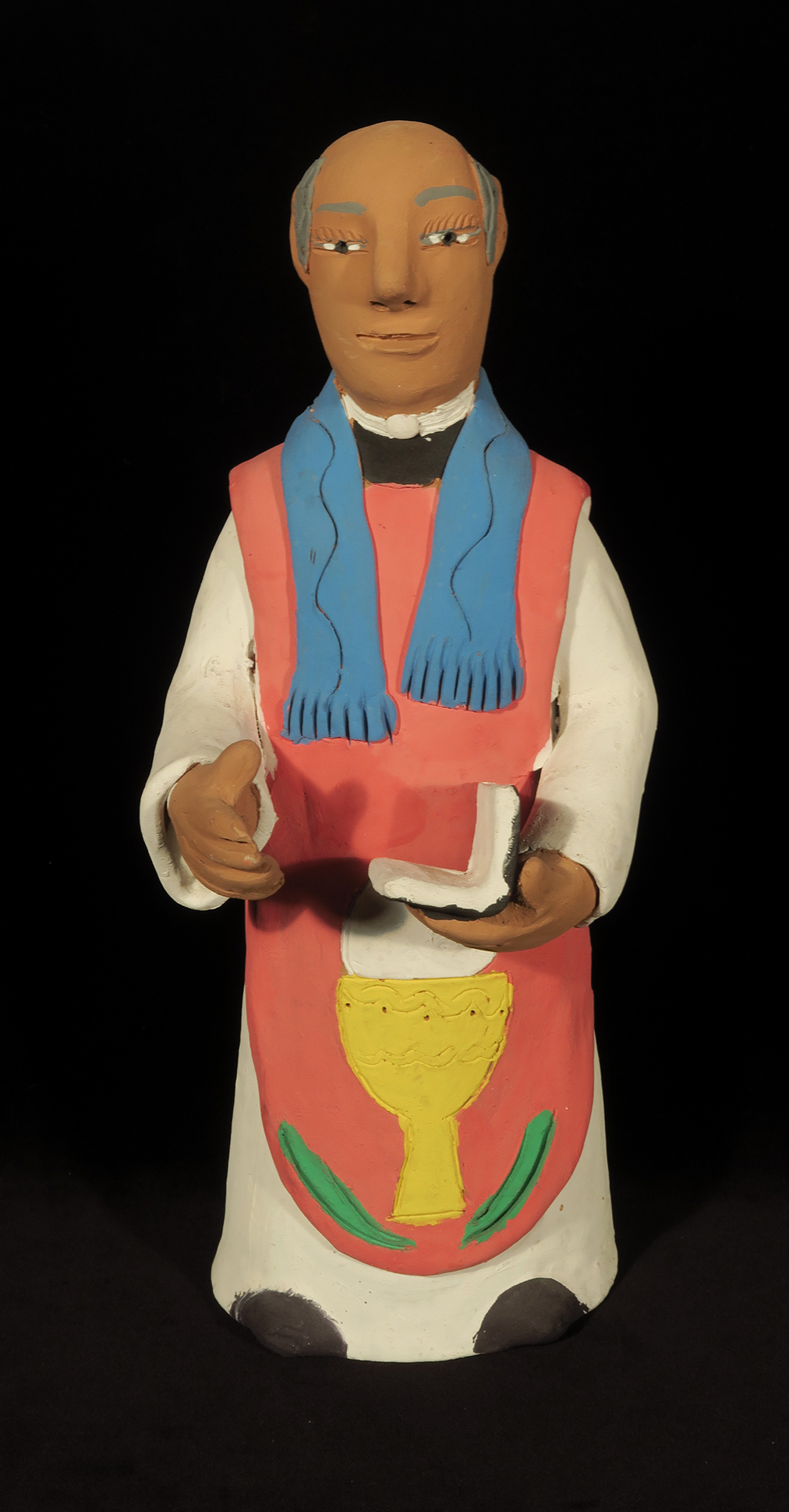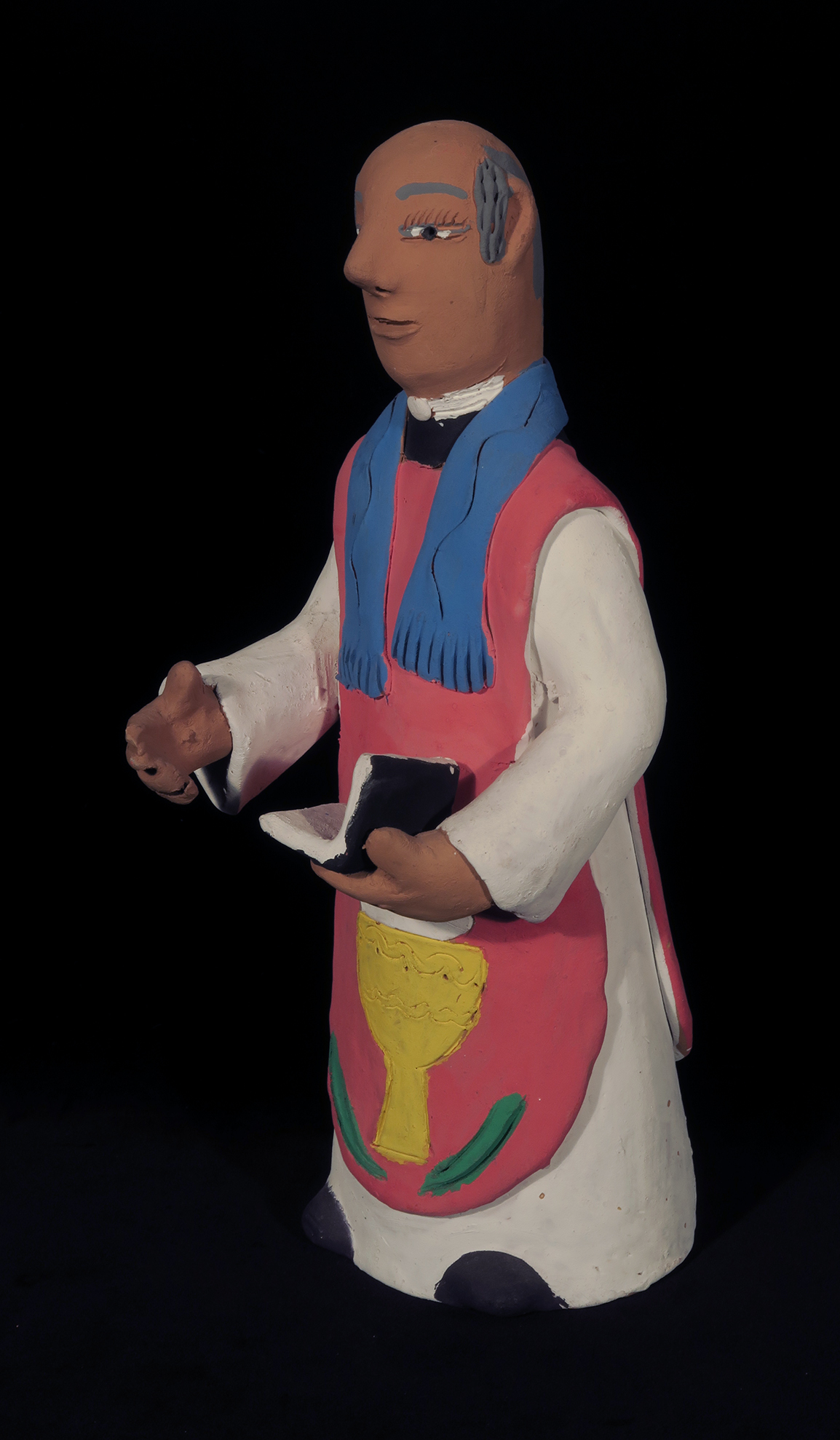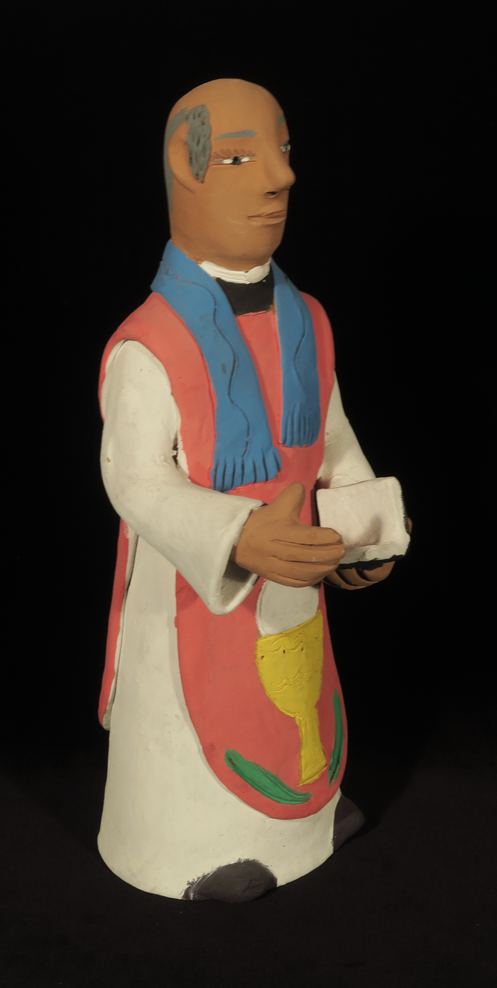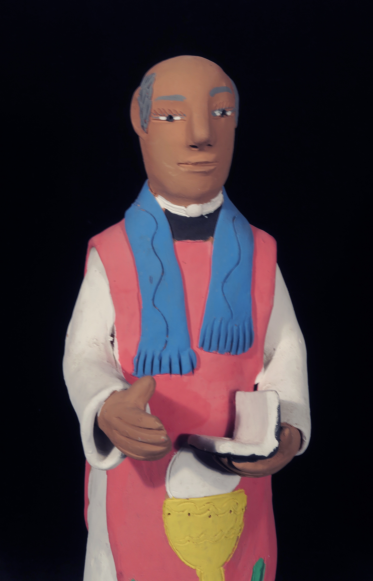 Fired clay figure painted with acrylic paints.